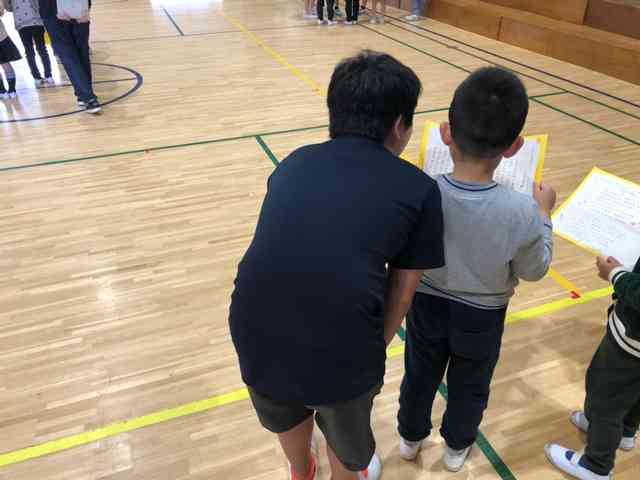 1年生に校歌を伝授! 自分が歌って真似してもらって、を 繰り返していました。 6年生、1年生、お互いに 校歌を大きな声で歌える学年になりましょう!