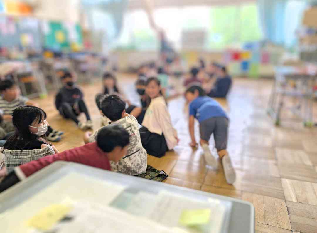 今日の朝の会は係活動として、ハンカチ落としをしました。円を2つ作ることで、回転を早くする工夫ナイスです! 係活動後の振り返りでは 良かった点「ハイハイ、けんけん、くま歩きなど、様々な歩き方で追いかけっこしたのが良かった」「机を下げるなど、必要なことを前日の帰りの会に伝えてくれたからすぐにレクを始められてよかった」 改善点「男子続き・女子続きが目立ったから、男女で活動する意識をもったほうがよかった」 など、経験をもとにこれから生かせていきそうなポイントがいくつも出てきました!【添付ファイル】