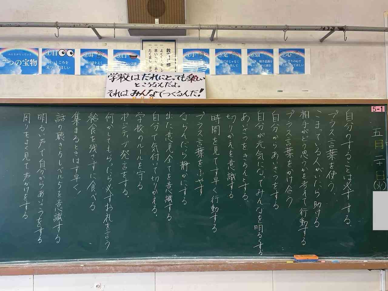 先週の土曜日にクラス会議で決めた自分のめあてです。今週4日間実践し、振り返りを行います。自分・友だち・宿の人も『ハッピー』になる移動教室にするため、自分のめあてを意識して生活しましょう!