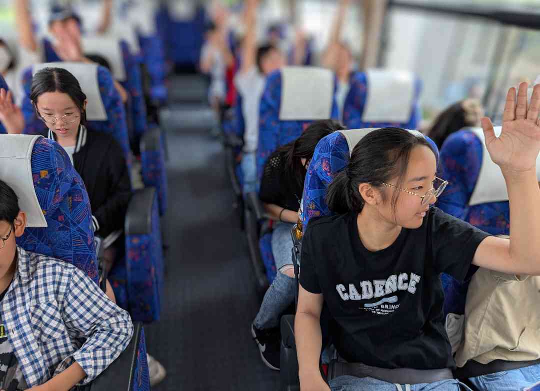 群馬県に入りました!もう少しでかみつけの里に到着します! 2号車では3つ目のバスレク「イントロクイズ」が始まりました!全員が参加できるようにと、3択形式で問題を出題するなど工夫が光ります! 余談ですが、第1問が5年生の移動教室でのイントロクイズと全く同じ「アンパンマンのマーチ」が流れ、どの年代にも愛されているんだなと感じました。