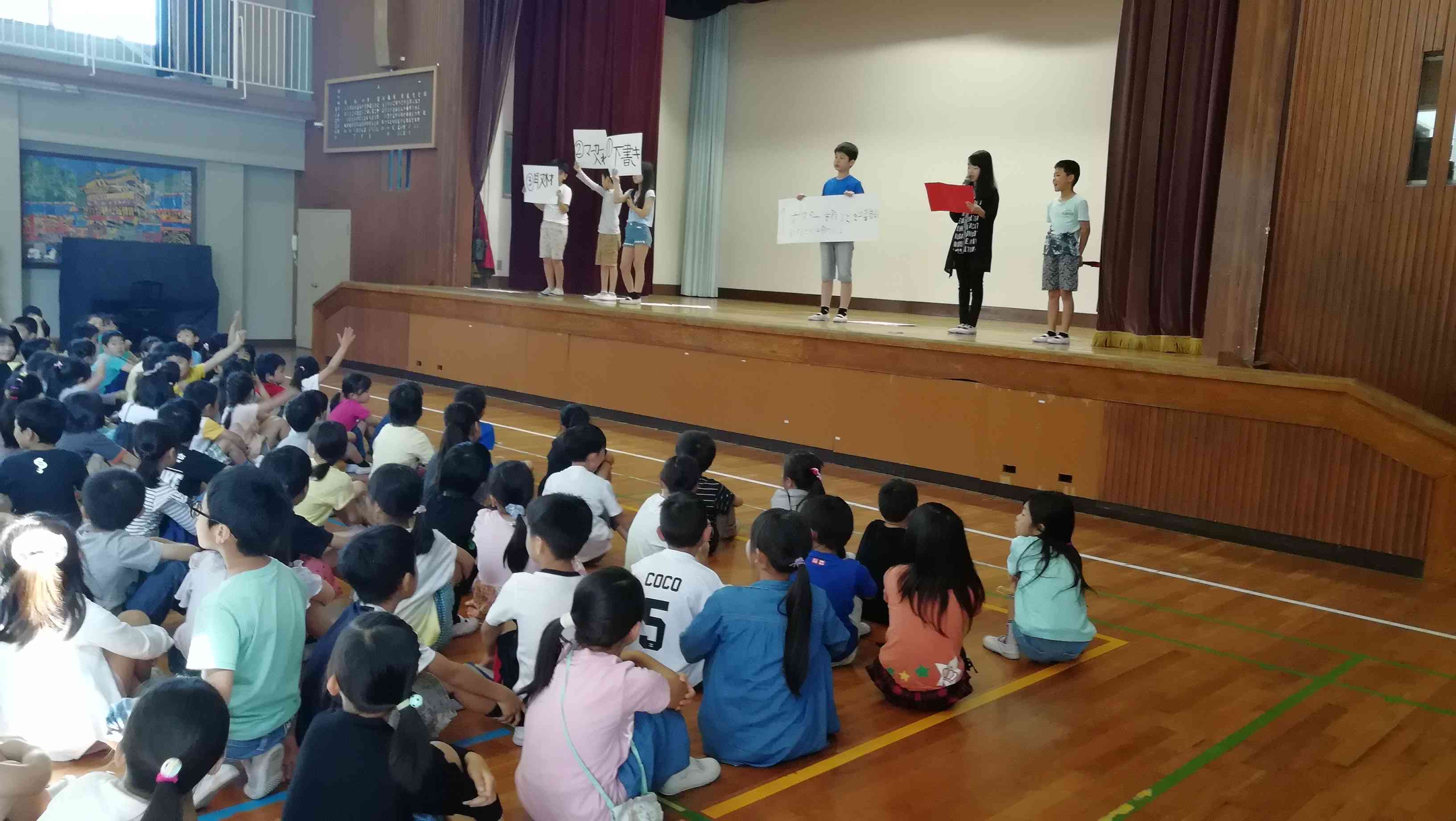 広報委員会が自分たちの仕事の紹介と どのように新聞を発行しているかを クイズ形式で楽しく発表しました。