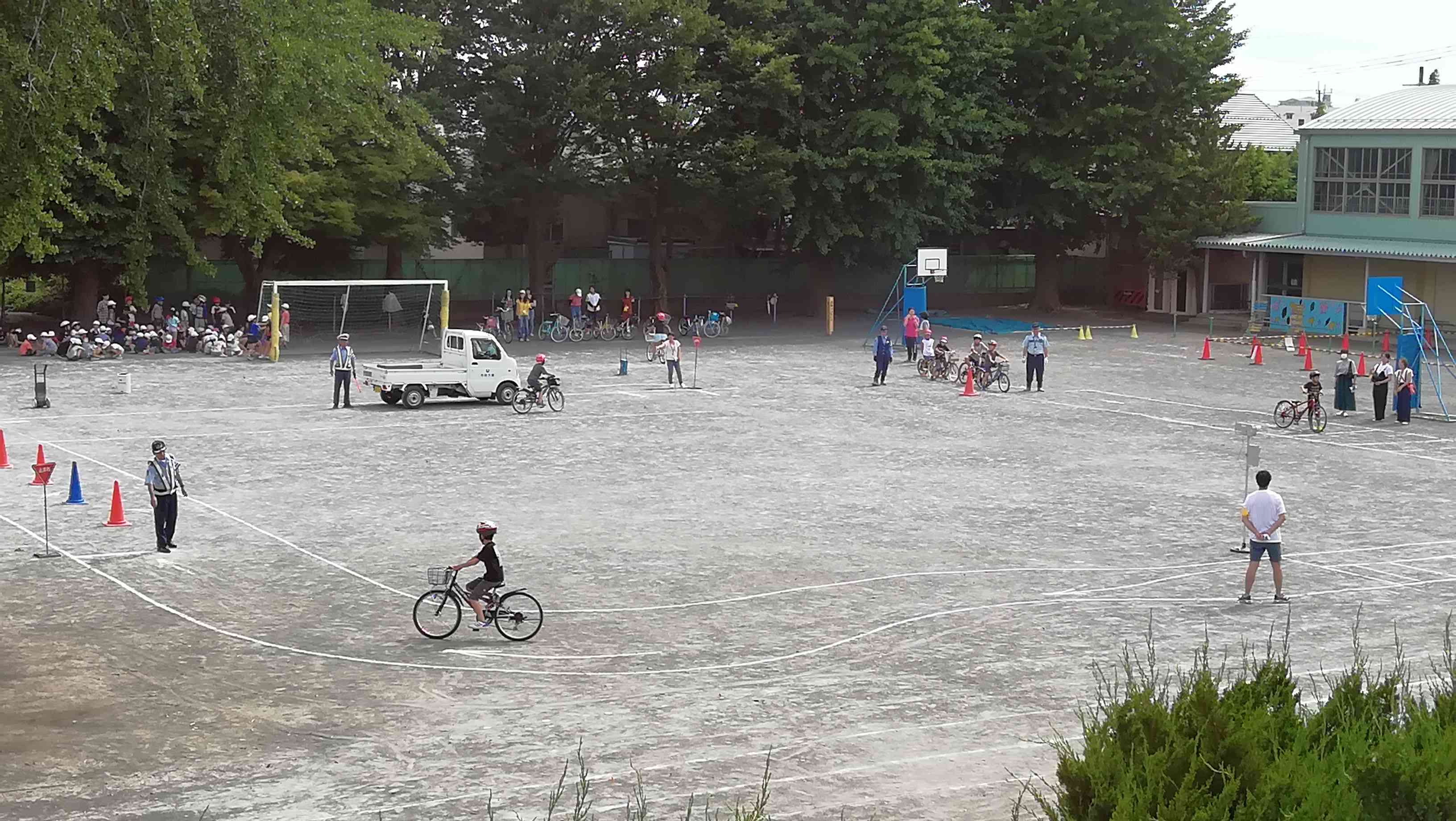 全学年が体育館で交通安全教室を実施しました。 午後からは3年生が自転車免許実技講習を受けました。 これで、3年生は自転車に乗れるようなります。