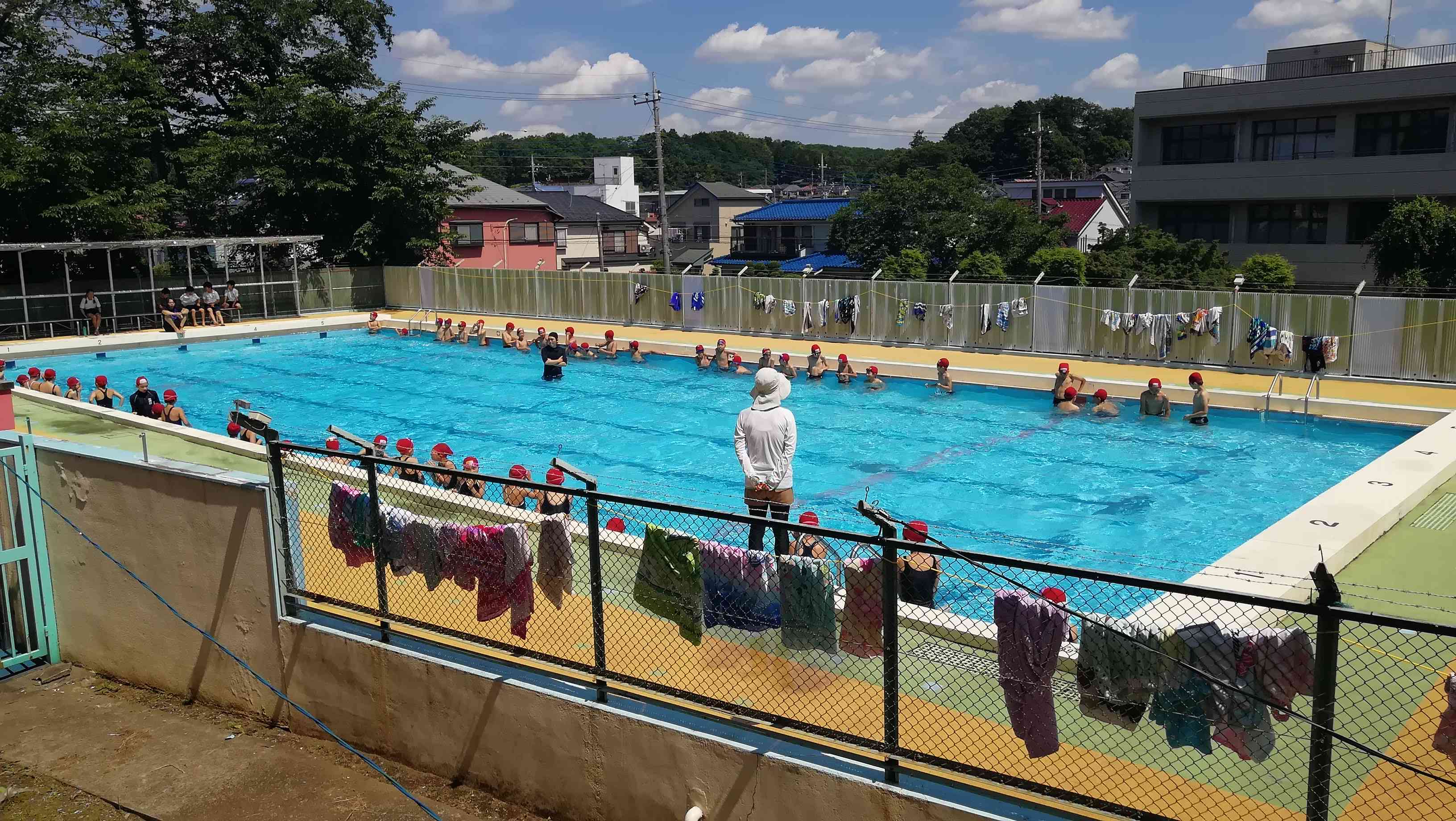 まだまだ、気温、水温ともにそんなに高くなく、 水は冷たいですが、水泳指導が始まりました。 子供たちは声を上げながら楽しそうに水泳の学習を行っています。