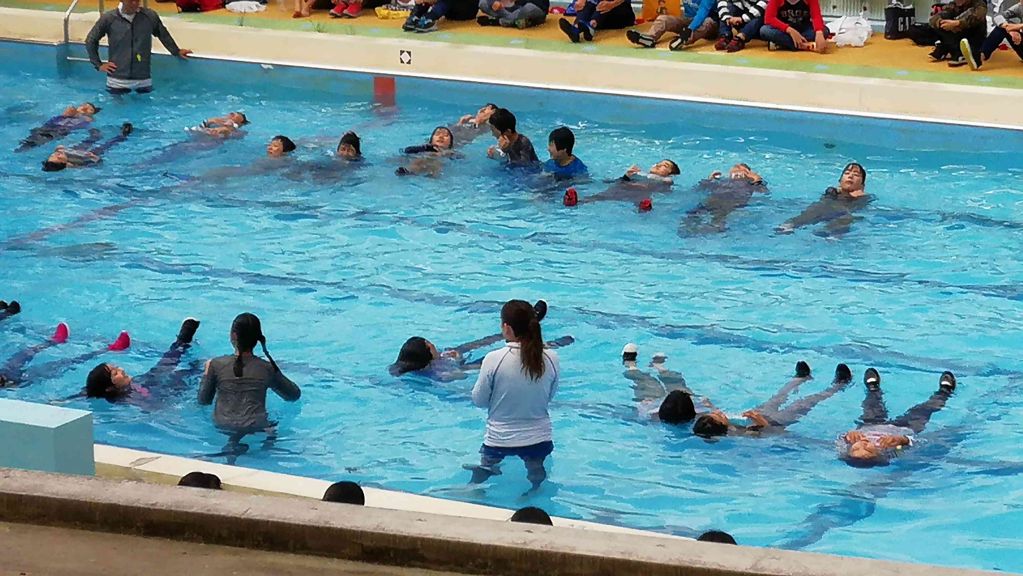6年生が夏休み前の体験として着衣泳を行いました。 はじめに水着で水慣れした後、着衣で水に入り、どれだけ水中で動くのが大変か体験しました。 そして、泳ぐのではなく浮くことが大切であることを学び、浮く練習をしました。 最後に、ペットボトルを使って長く浮いていられるコツを学びました。