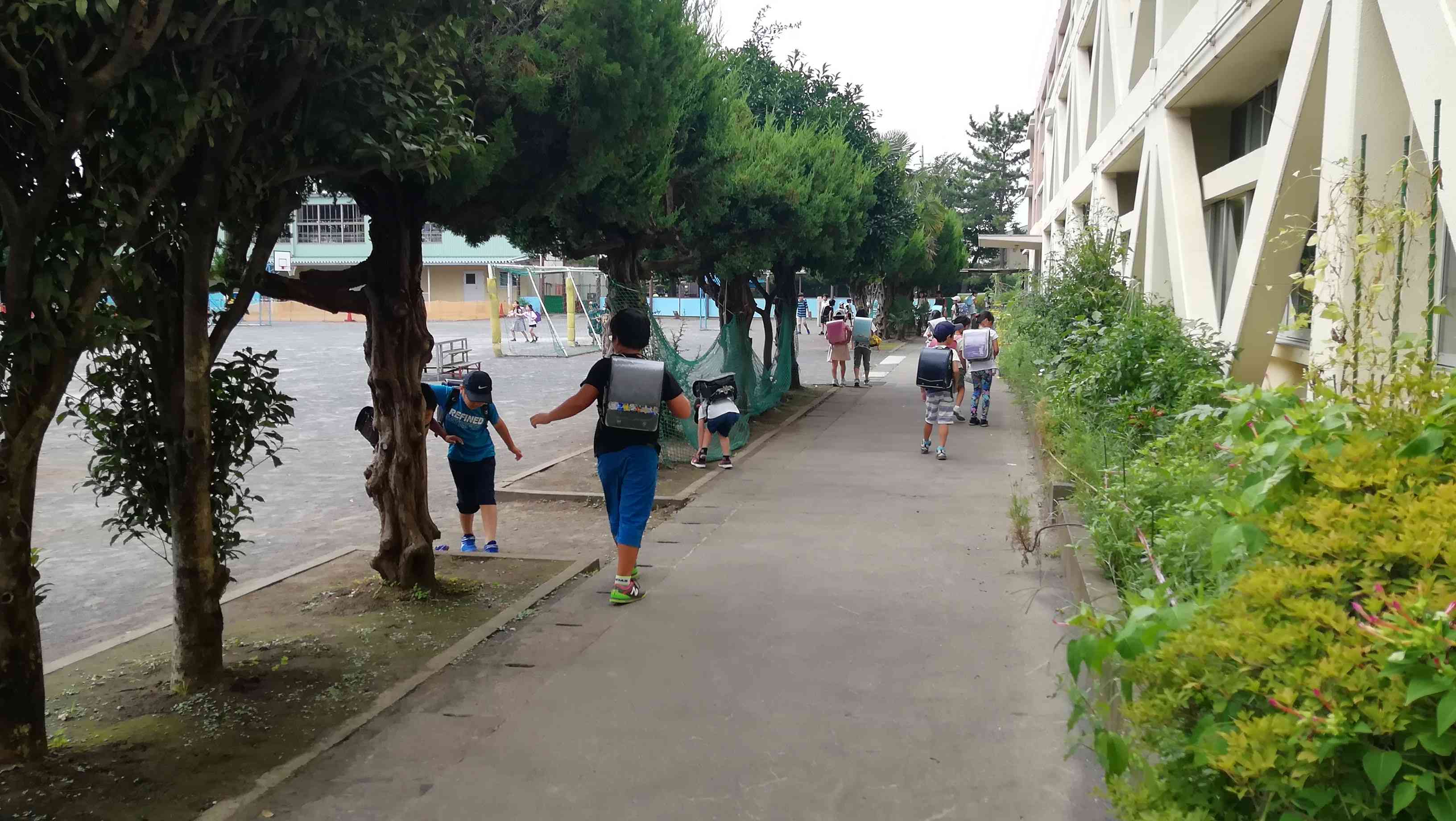長かった夏休みも終わり、いよいよ2学期が始まりました。 朝夕はずいぶんと涼しくなったのですが、日中はまだまだ暑い日々が続きます。 本日より朝遊びがなくなったのですが、早く来た子どもも 昇降口前で時間になるまで待つことができました。 ご協力ありがとうございました。 8時40分より始業式を行い4校時まで友達と一緒に過ごし、子どもたちは 楽しそうに下校しました。
