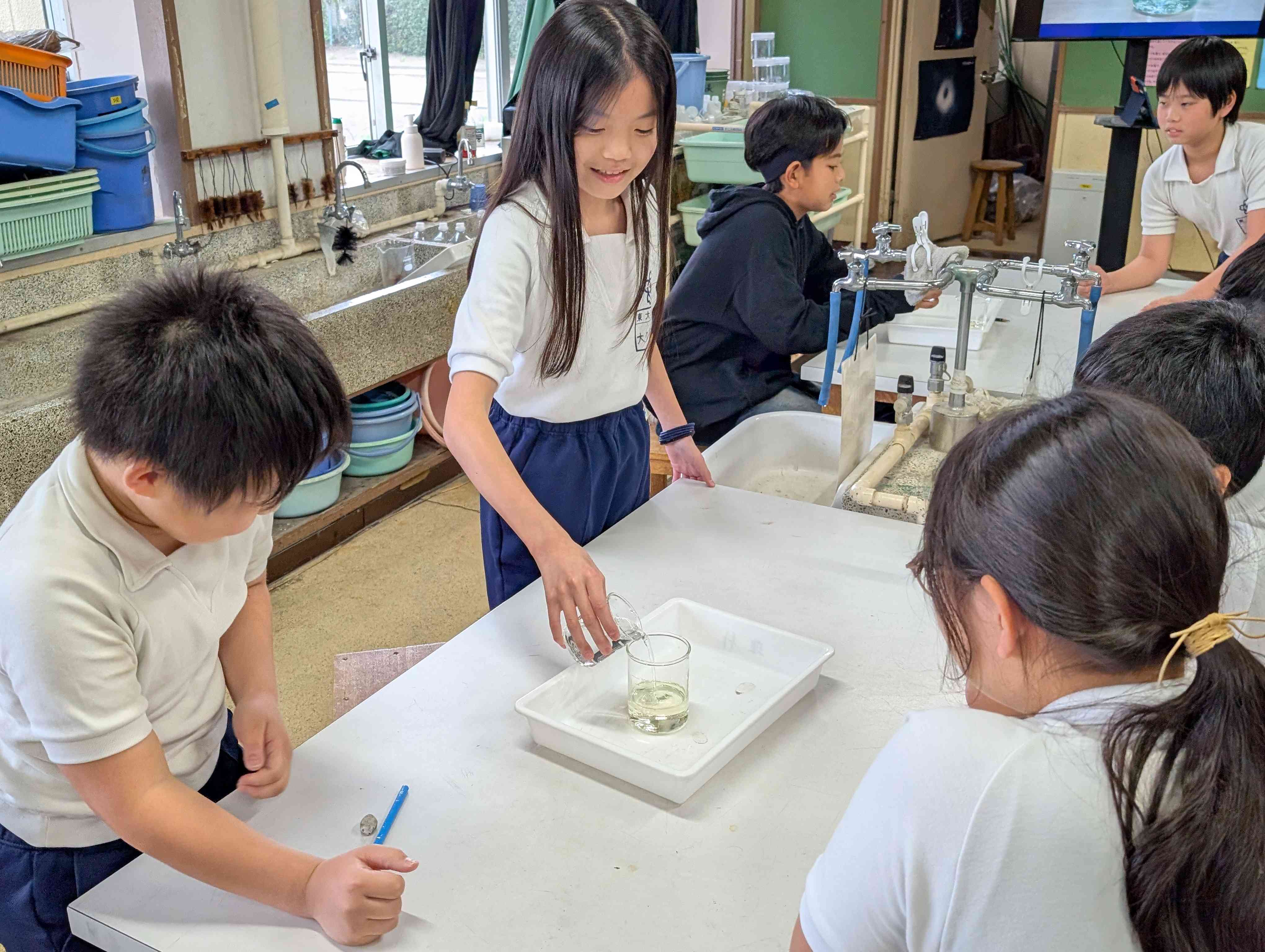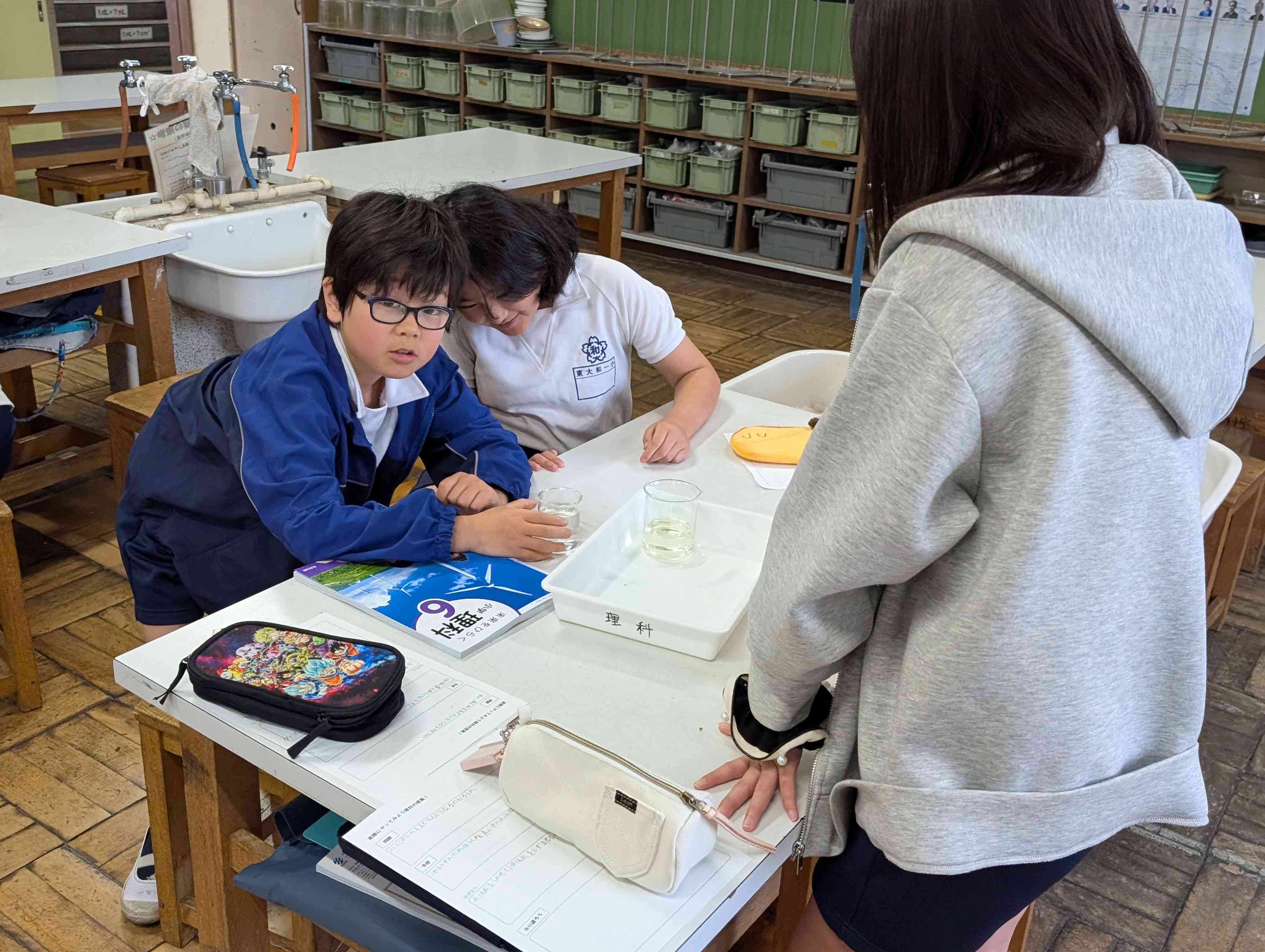 理科の学習のオリエンテーションです!先生の思いや考えを伝えた後に、お楽しみ実験をしました。 『水と油の中に氷を入れるとどうなるか?』という疑問を実験を通して解決しました。 皆さんはどうなると思いますか?