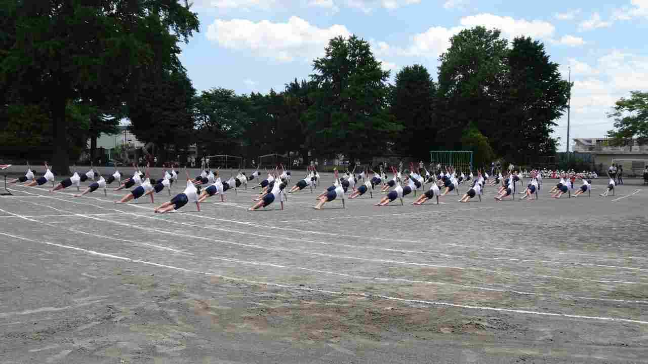 「協力から絆へ」。 最高学年らしく、力強く、キレのある演技でした。途中、来場者のために集合して記念撮影ショットを表現の中に入れるという演出もありました。6年生が真剣に演技する姿はとても感動的でした