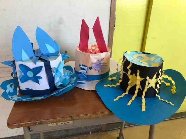 日中は穏やかな日もありますが、朝晩はだいぶ寒い日が続きます。 厚手の上着を着たり、帽子やネックウォーマーを身に付けたりする児童も少しずつ増えてきました。 今日は図工室前に3年生のつくった「わたしだけのすてきな帽子」が飾ってありました。すてきな帽子を見ると、寒い日も心がぽかぽかと温まります。